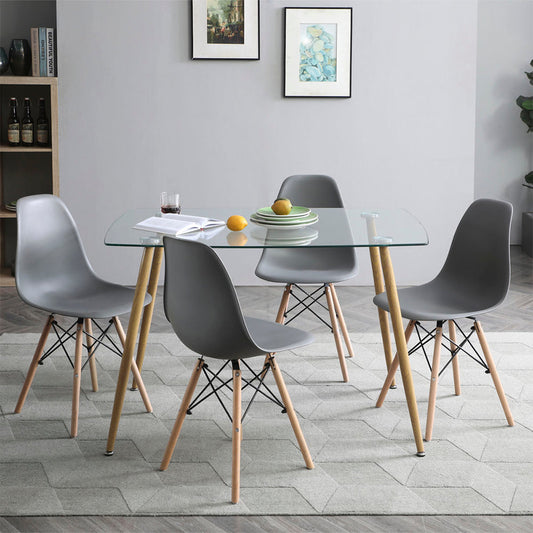 Comedor Dortmund con 4 sillas Oxford - Cristal y Gris