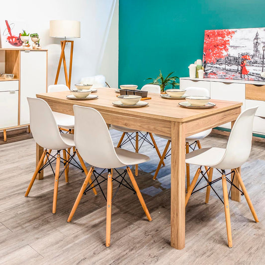 Comedor Mathis con 6 sillas Oslo - Color Madera y Blanco