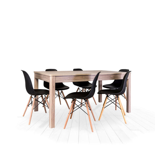 Comedor Mathis con 6 Sillas Oslo - Color Madera y Negro
