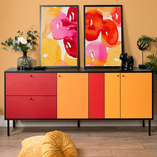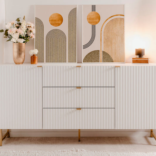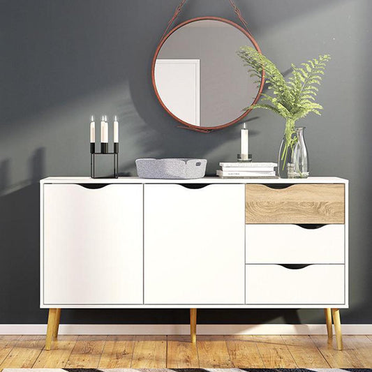 Credenza Breslavia - Color Madera y Blanco Brillante