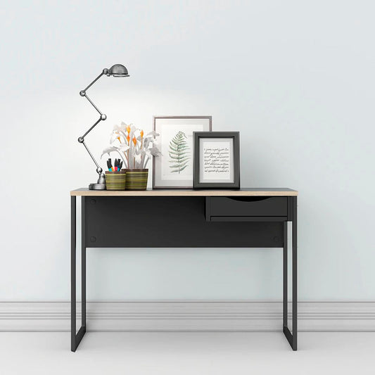 Escritorio con 1 Cajon y 1 Puerta Nomo - Color Roble y Negro Mate
