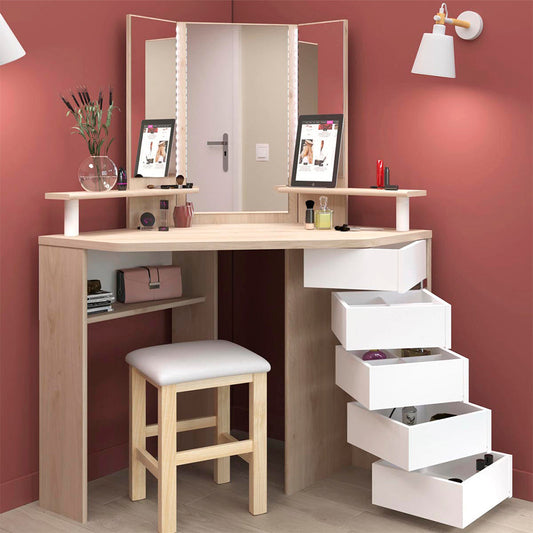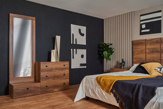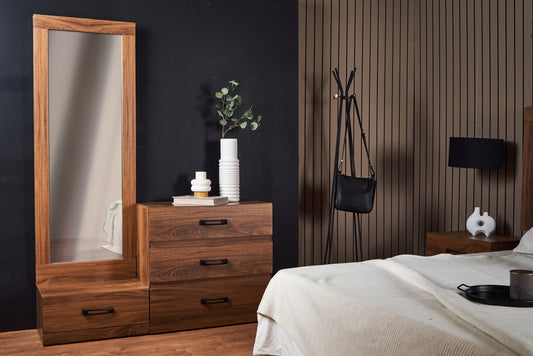 Tocador Cajonera y Espejo de cuerpo completo Loula - Nogal