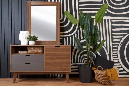 Tocador, Cajonera y Espejo - Nogal y Gris