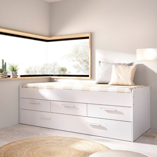 Armario de 3 Puertas con Espejo y 3 Cajones Ventro - Color Blanco y Roble
