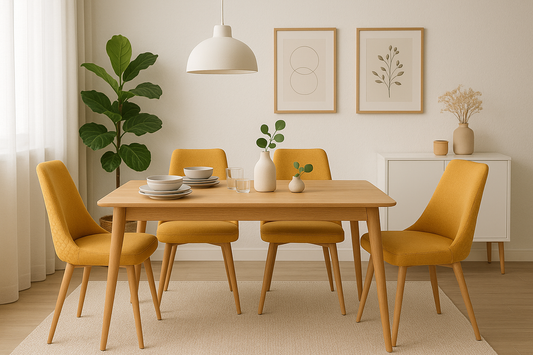 Mesa de comedor Yorda con 4 sillas Ksual - Madera y Mostaza