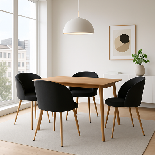 Mesa de comedor Yorda con 4 sillas Elisa - Madera y Negro