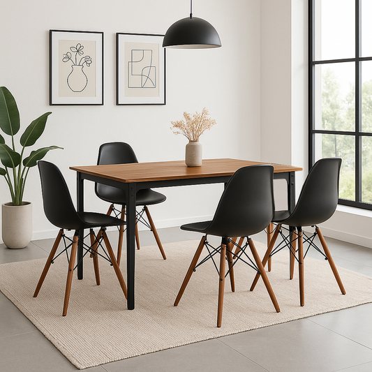 Mesa rectangular Munich con 4 sillas Gabani - Negro y Café