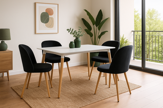 Mesa rectangular Munich con 4 sillas Elisa - Blanco y Negro