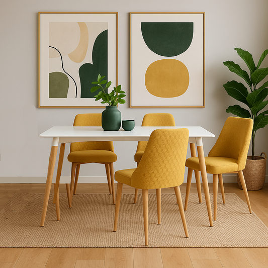 Mesa rectangular Munich con 4 sillas Mango - Blanco y Mostaza