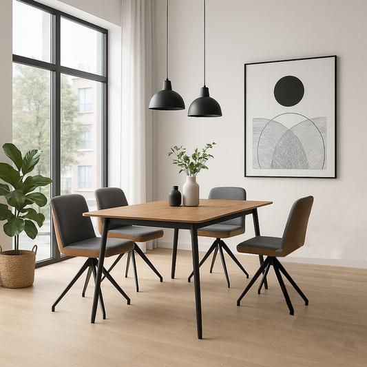 Mesa de comedor Sansa con 4 sillas Oslo - Nogal, Negro y Blanco
