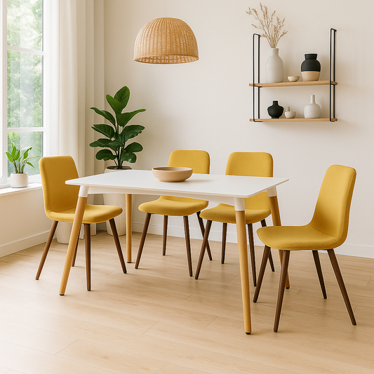 Mesa rectangular Munich con 4 sillas Ksual - Blanco y Mostaza