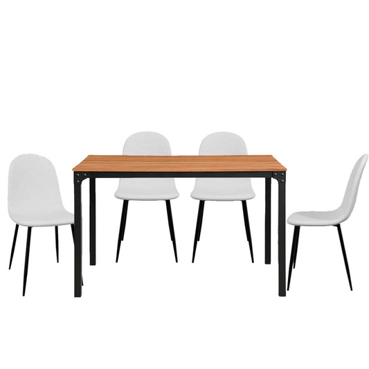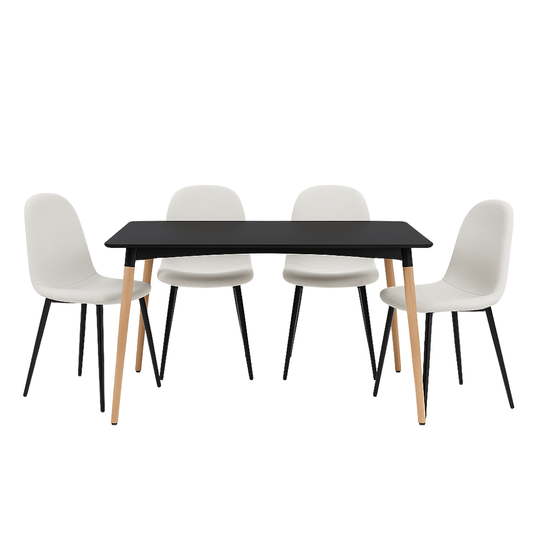 Mesa de comedor Sansa con 4 sillas Boucle - Nogal, Negro y Blanco