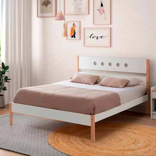 Cama matrimonial Narnia - Gris Oscuro y Madera
