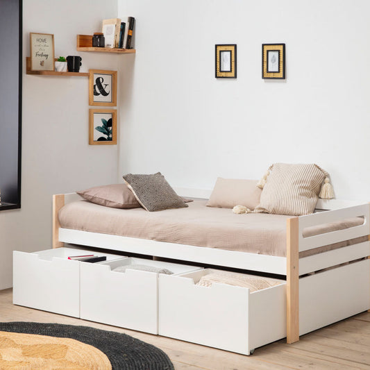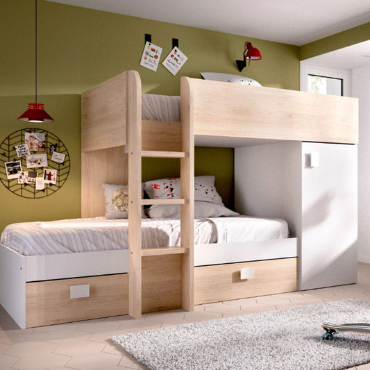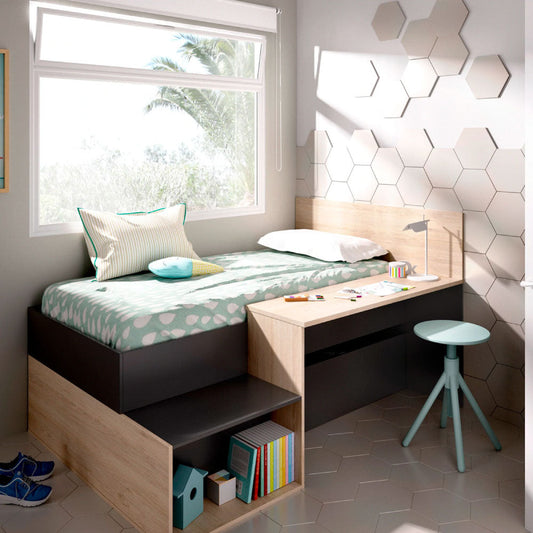 Cama Individual Kaori - Color Madera y Gris Oscuro