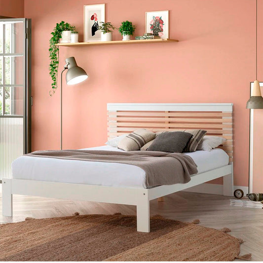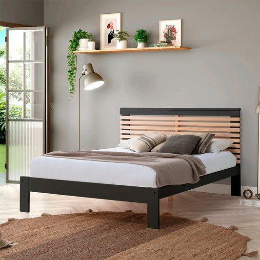 Cama matrimonial Maru - Gris Oscuro y Madera