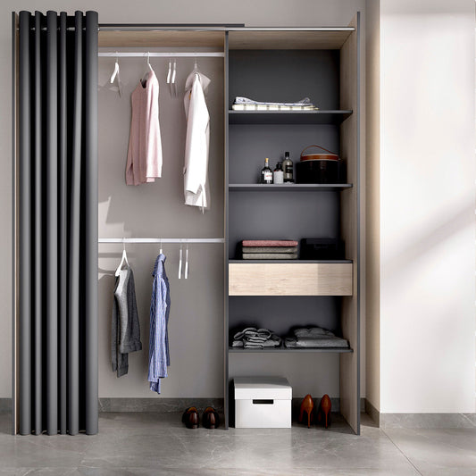 Clóset Nozomi de 160cm - Color Madera y Gris Oscuro