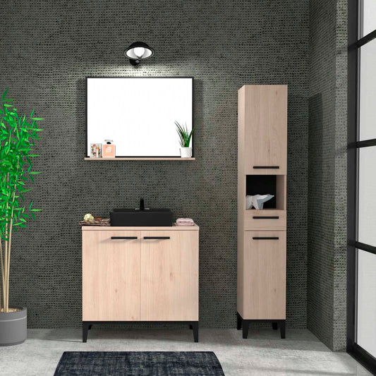 Conjunto mueble de baño espejo Kendo - Color Madera y Negro