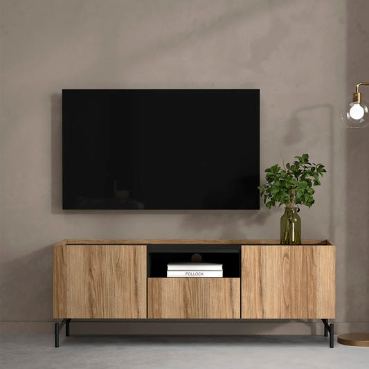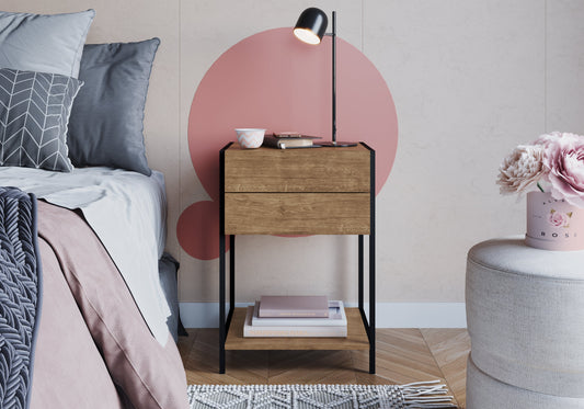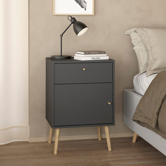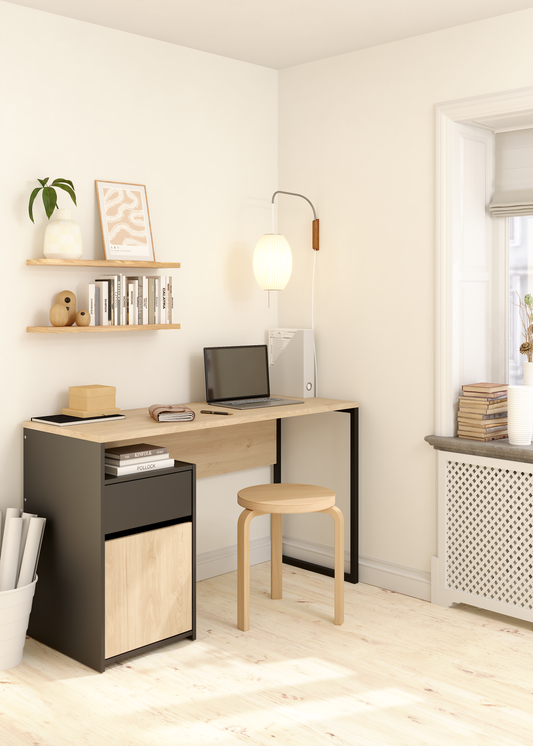 Escritorio con 1 Cajon y 1 Puerta Nomo - Color Roble y Negro Mate
