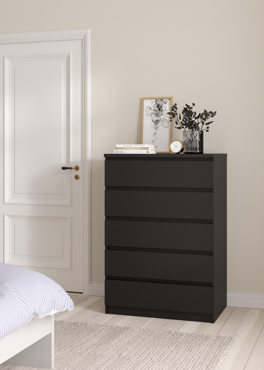 Cómoda de 5 Cajones Livra - Color Negro Mate
