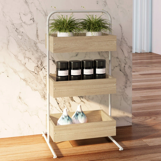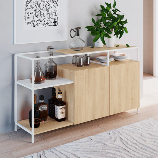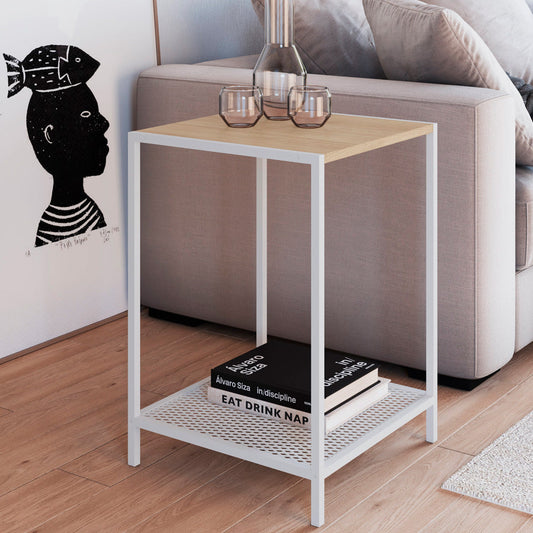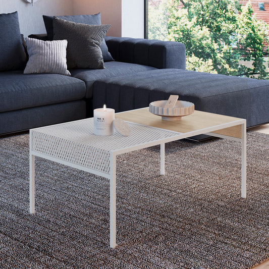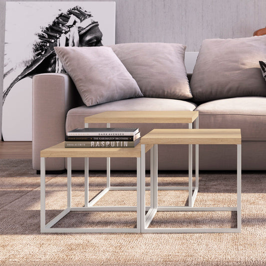 Juego de 3 mesas de centro Long - Blanco y Color Madera