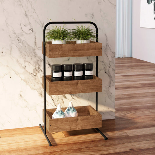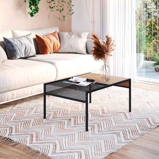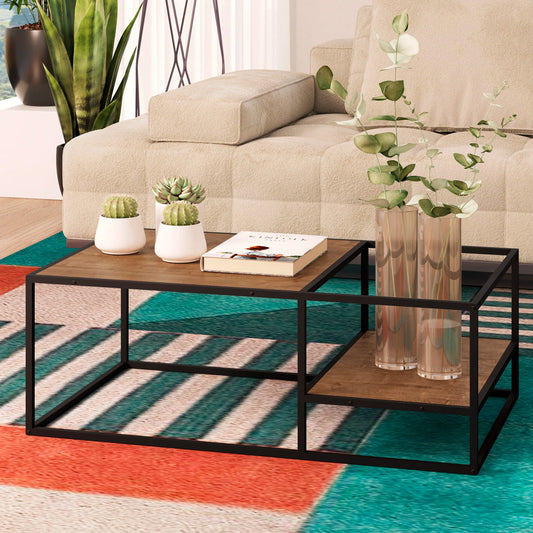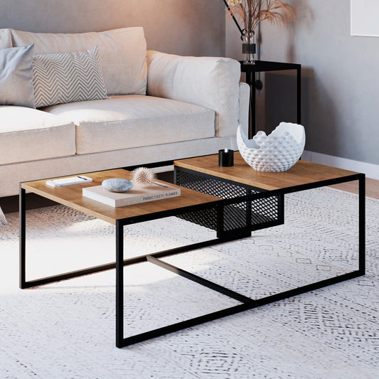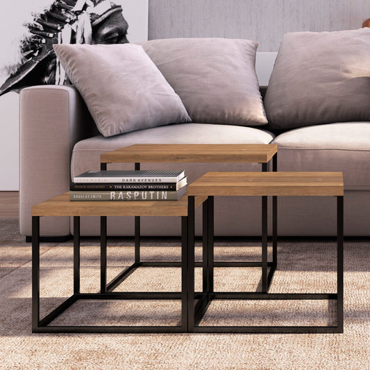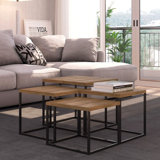 Juego de 3 mesas de centro Long - Negro y Color Madera