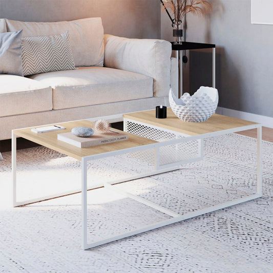 Mesa de centro Tanawat- Blanco y Color Madera