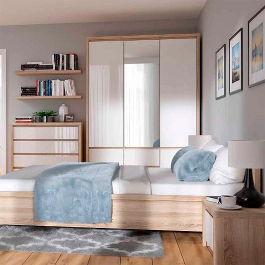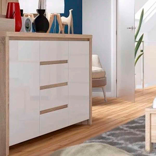 Mesa para tv Flash - Color Madera y Blanco brillante