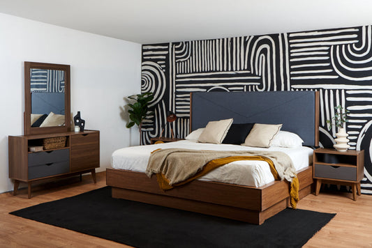Recámara King Size de 5 piezas - Nogal y Gris