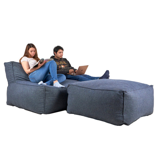 Puff de 2 Plazas y Taburete Novo - Azul Marino