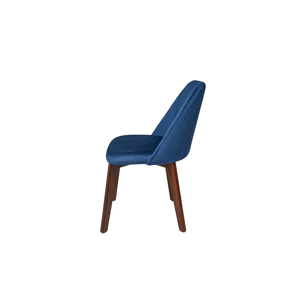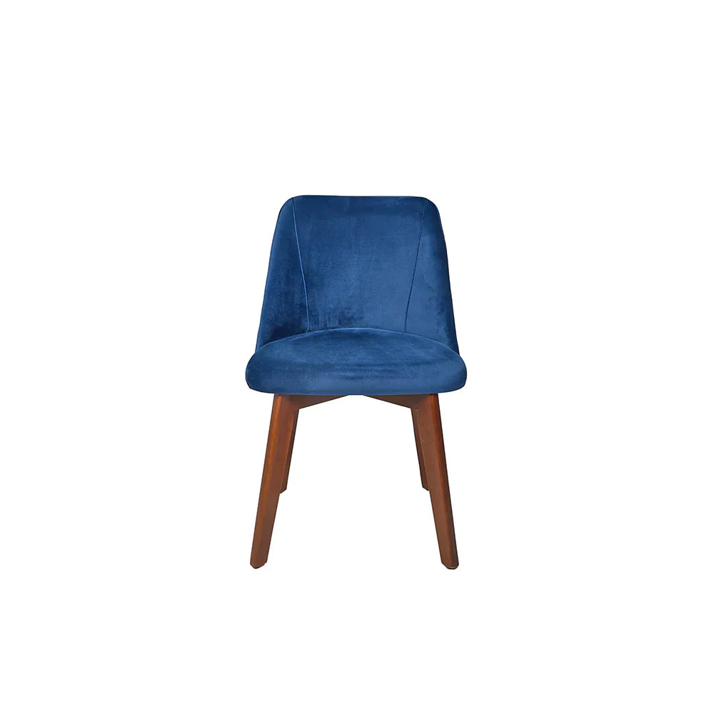 Mesa Rectangular de Madera MDF para Comedor con Patas de Metal y 4 sillas tapizadas en terciopelo con patas en pino acabado nogal.