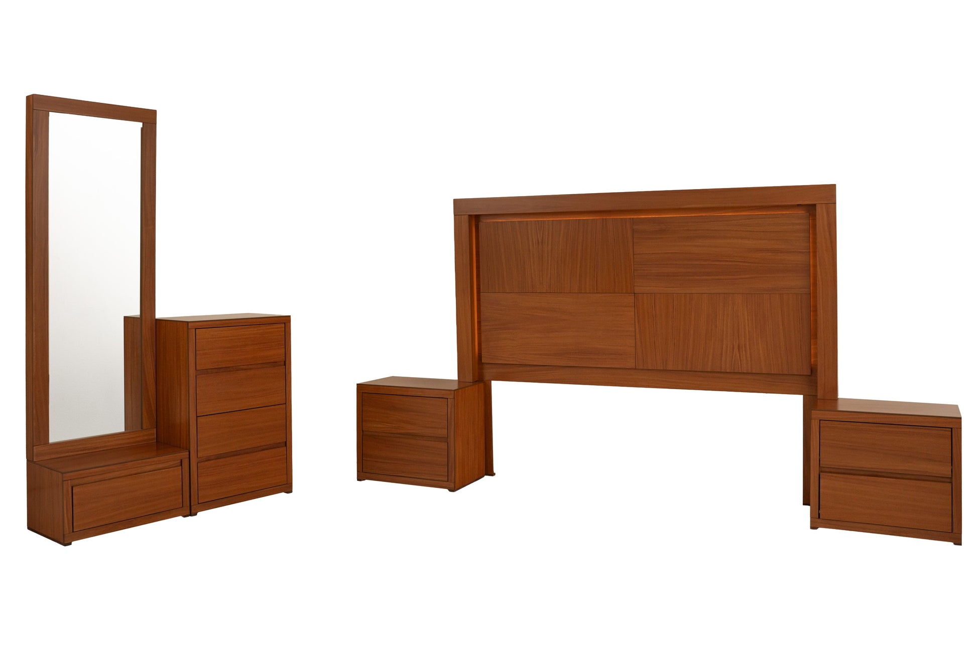 Descubre la fusión perfecta entre elegancia y diseño con este set de recámara completa, que incluye: una cabecera con luz integrada, ideal para un colchón tamaño king; dos burós, cuyo diseño versátil y almacenamiento eficiente mantienen la armonía y el orden; una cómoda y espejo que también funciona como vanity o tocador, proporcionando el espacio perfecto para maquillarse, arreglarse o simplemente prepararse para el día. Su diseño elegante y funcional aporta estilo y sofisticación al ambiente. Todos los productos fueron fabricados con materiales duraderos y un diseño atemporal. Se entregan completamente armados para un uso inmediato. Un conjunto perfecto para transformar tu dormitorio en un refugio con estilo y confort. No incluye base para cama ni colchón.