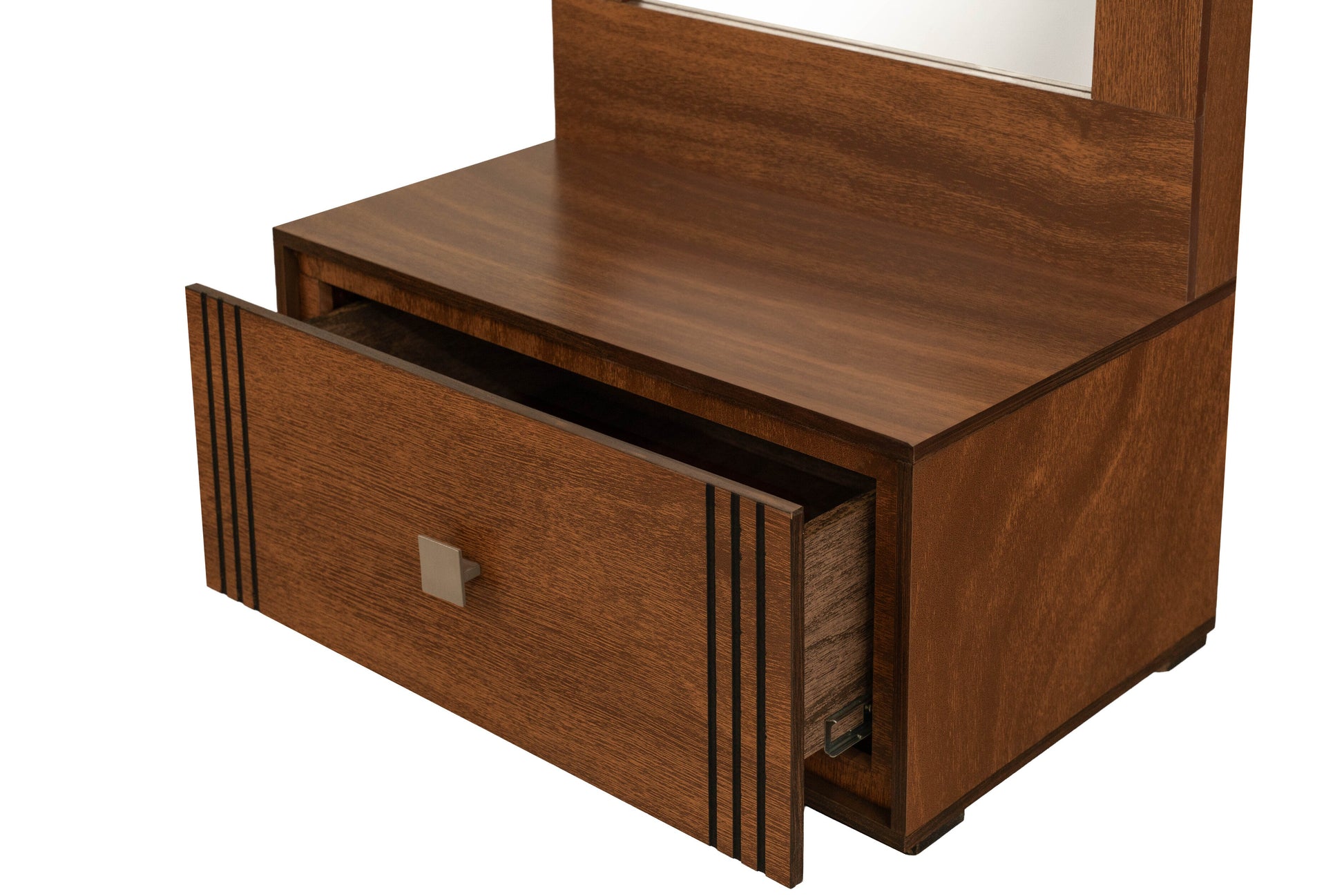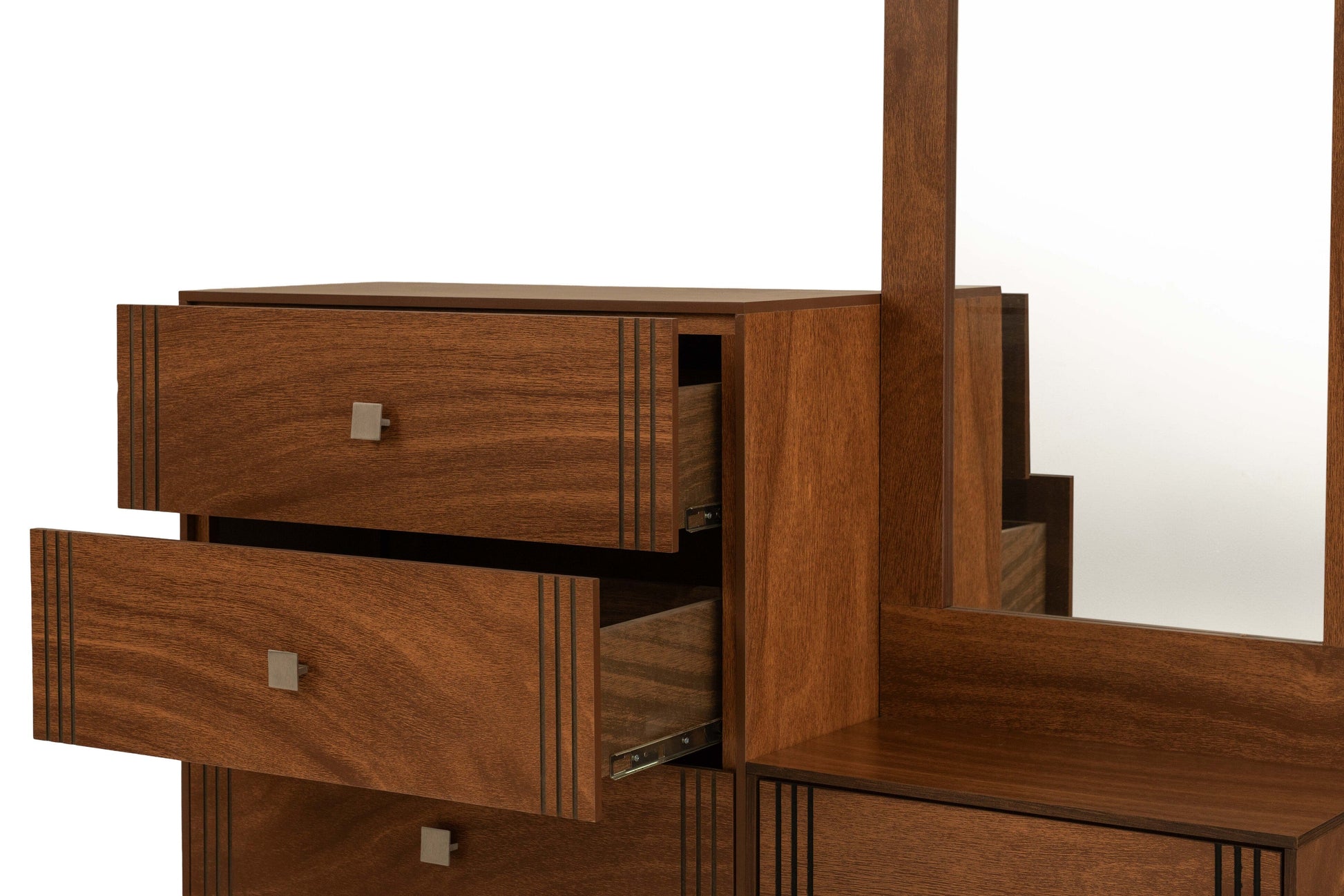 Descubre la fusión perfecta entre elegancia y diseño con este set de recámara completa, que incluye: una cabecera, ideal para un colchón tamaño king; dos burós, cuyo diseño versátil y almacenamiento eficiente mantiene la armonía y el orden; una cómoda y espejo que también funciona como vanity o tocador, proporcionando el espacio perfecto para maquillarse, arreglarse o simplemente prepararse para el día. Su diseño elegante y funcional aporta estilo y sofisticación al ambiente. Todos los productos fueron fabricados con materiales duraderos y un diseño atemporal. Se entregan completamente armados para un uso inmediato. Un conjunto perfecto para transformar tu dormitorio en un refugio con estilo y confort. No incluye base para cama ni colchón.