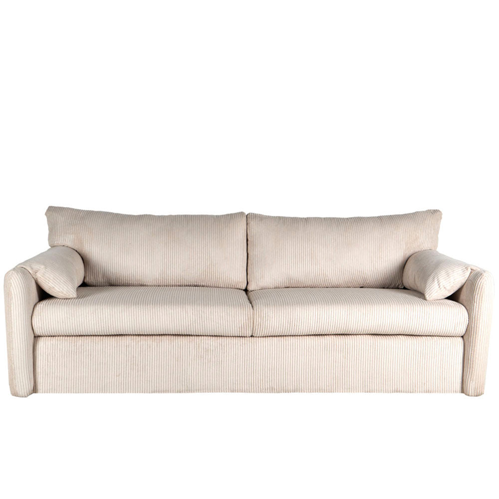 Sofá de 3 Plazas Tapizado en Tela Chenille Color Marfil. Estructura de Madera Sólida