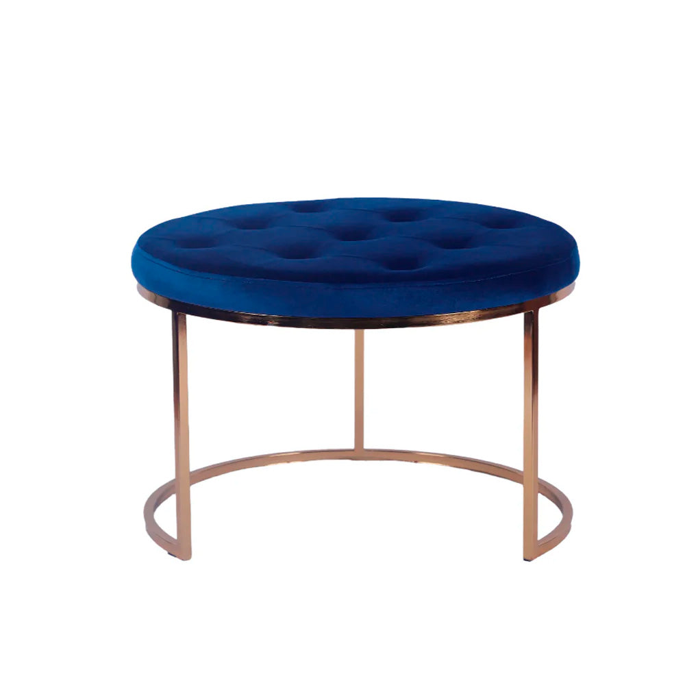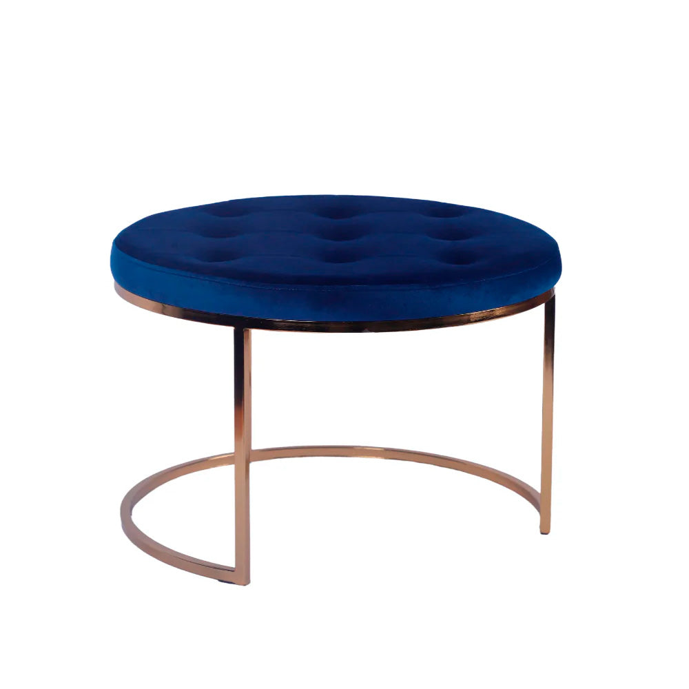 Taburete elaborado con estructura de MDF, cubierta de terciopelo y patas en metal galvanizado y base de hierro